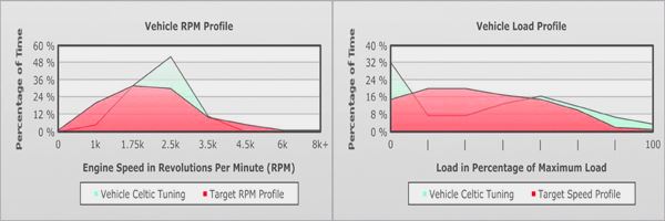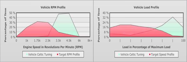 Seuraavat kaaviot ovat todellisia tietoja Vw Caddy 1.9 TDi 102bhp: stä. Ne korostavat tyypillistä kuljettajaprofiilia, jonka monet laivastot kokevat. Celtic Tuningin ekologisen uudelleenkalibroinnin avulla ajokalustopäälliköt voivat tarkistaa kuljettajan käyttäytymistä varmistaen ajoneuvon turvallisuuden, paremman polttoainetalouden ja vähentäen C02-päästöjä.
