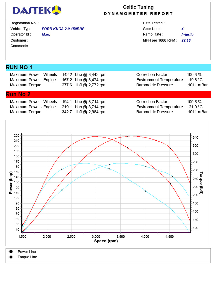 Titanium X:ssäni on sama moottori kuin ST:ssä, ja se vetää hyvin vakiona, mutta nyt kun se on Stage 1 Remapattu, sen teho tuntuu vaivattomalta. Se vetää voimakkaasti 3. ja 4. vaihteella, mutta on huomattavissa kaikilla vaihteilla, koska vaihteenvaihto on paljon nopeampaa. Olen teettänyt tämän kartan, koska vedän raskasta ruokaperävaunua, ja nyt se on paljon helpompaa kiitos Celtic Tuningin. Olen erittäin tyytyväinen!!